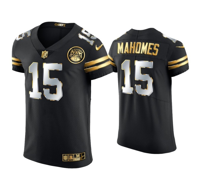 Men Kansas City Chiefs #15 Patrick Mahomes Black Golden Edition Elite Jersey