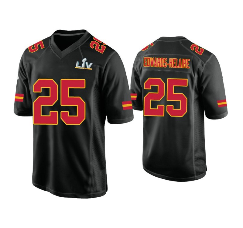 Men Kansas City Chiefs #25 Clyde Edwards-Helaire Super Bowl LV Black Game Fashion Jersey