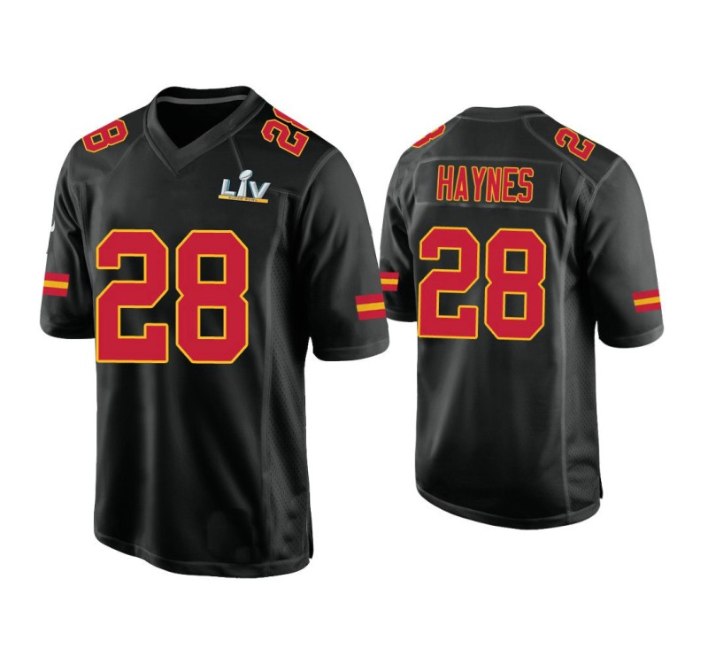 Men Kansas City Chiefs #28 Abner Haynes Super Bowl LV Black Game Fashion Jersey