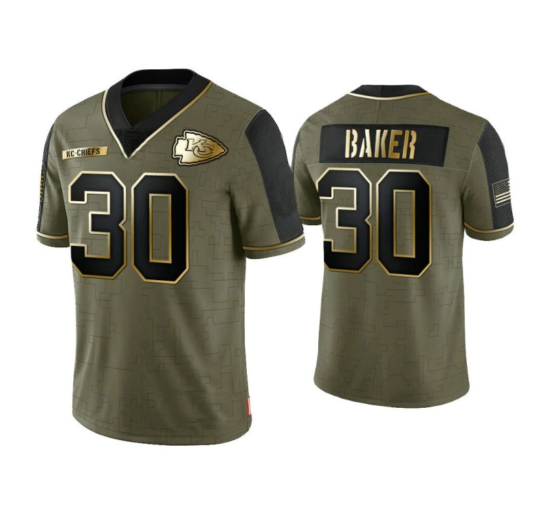 Men Kansas City Chiefs #30 Deandre Baker Olive Gold 2021 Salute To Service Limited Jersey