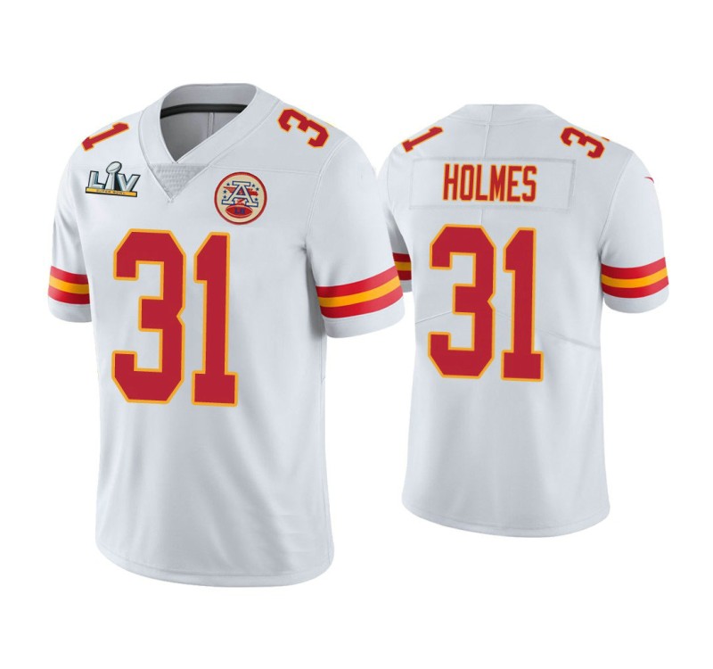 • Men Kansas City Chiefs #31 Priest Holmes Super Bowl LV White Vapor Limited Jersey