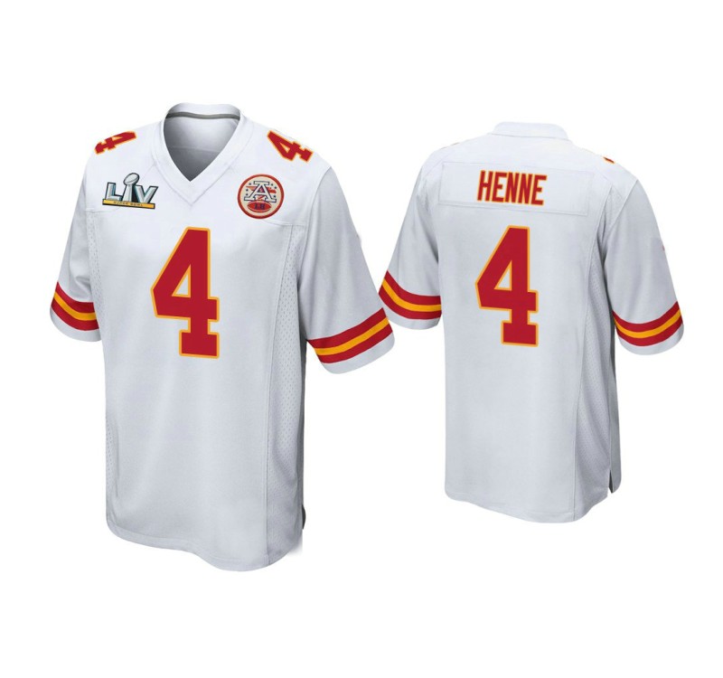 Men Kansas City Chiefs #4 Chad Henne Super Bowl LV White Game Jersey
