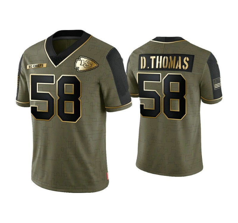 Men Kansas City Chiefs #58 Derrick Thomas Olive Gold 2021 Salute To Service Limited Jersey