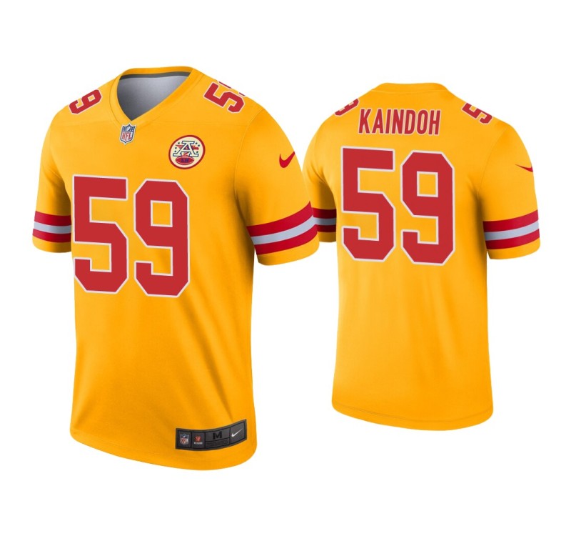 Men Kansas City Chiefs #59 Joshua Kaindoh Gold Inverted Legend Jersey