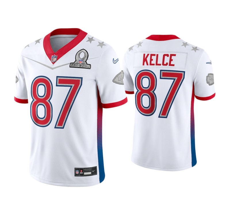 Men Kansas City Chiefs #87 Travis Kelce 2022 AFC Pro Bowl White Game Jersey
