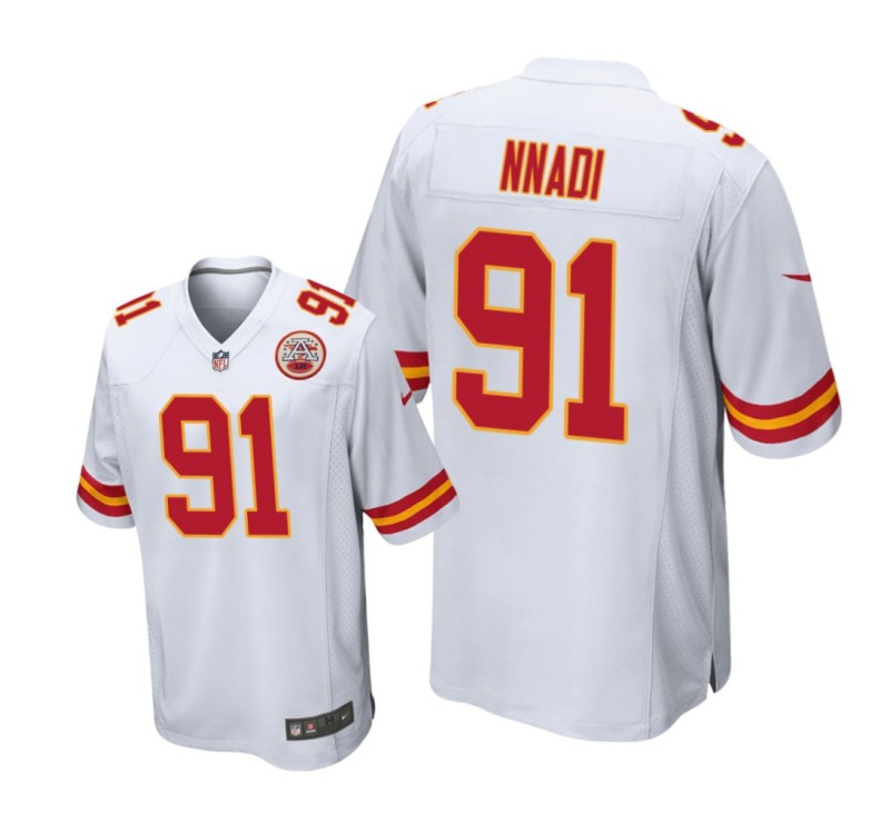 Men Kansas City Chiefs #91 White Derrick Nnadi Nike Game Jersey